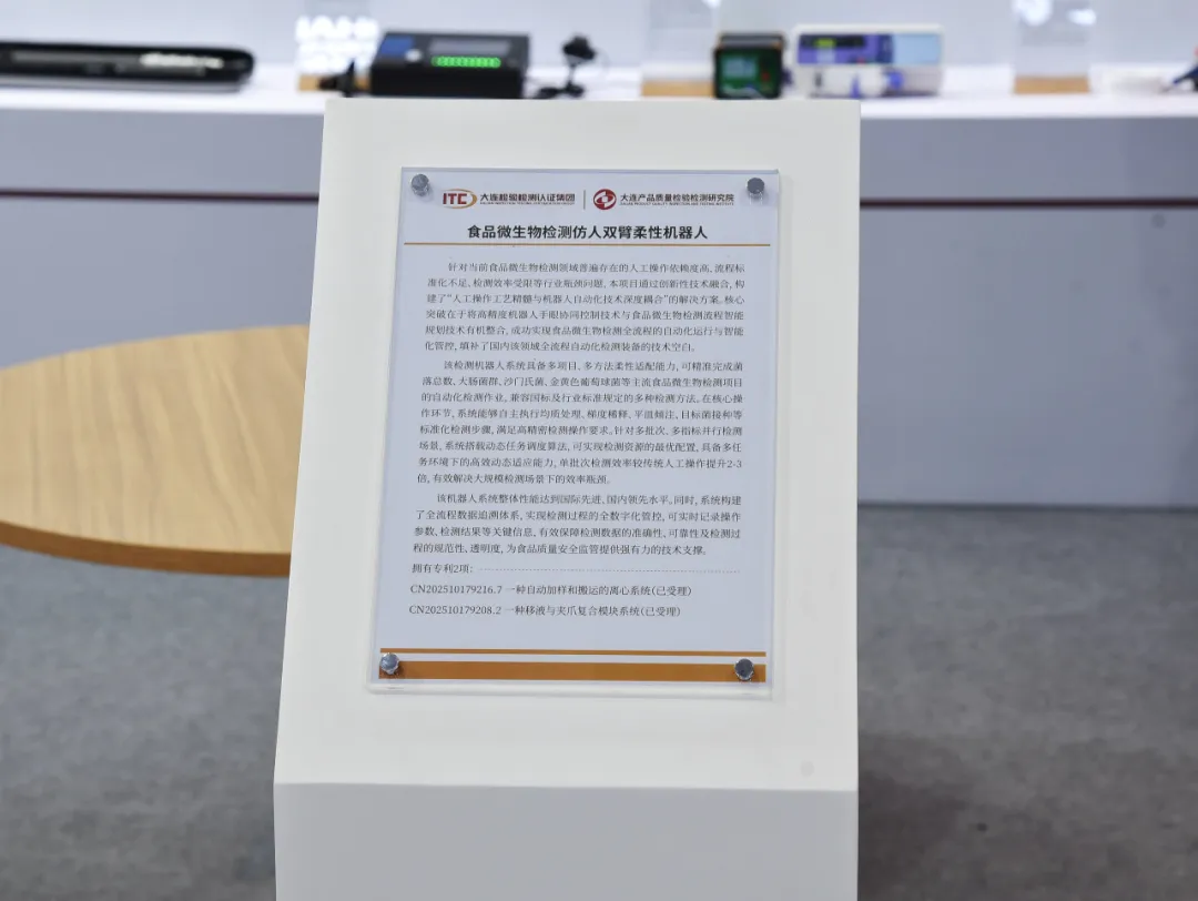 10月13日,第十四届中国国际专利技术与产品交易会(以下简称“专交会”)在大连盛大启幕。大连检验检测认证集团有限公司(以下简称 “集团”)在展会上发布“仿人臂微生物智能检测机器人”,以自主创新技术助力食品检测领域智能化升级,引发行业广泛关注。